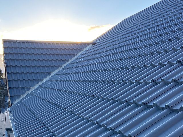 ButtonNew concrete pantile roof installation to new build property, Evedon